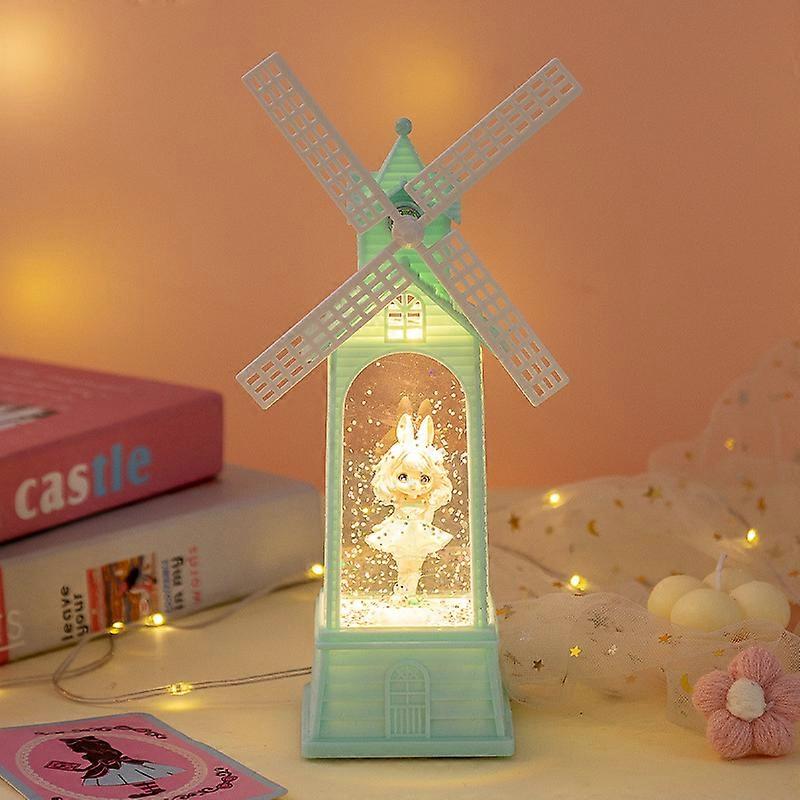 Creative windmill music box LED luminous crystal lamp Valentine's Day gift friend girlfriend birthday gift windmill green dress girl