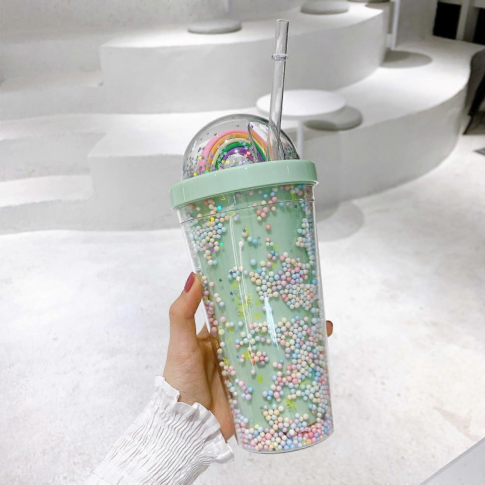 IMossad Sequined Stars Rainbow Ice Cup with Straw & Lid, Compatible with Party Supplies - Travel Tumbler for Kids, Girls Birthday, Picnic, Freezer