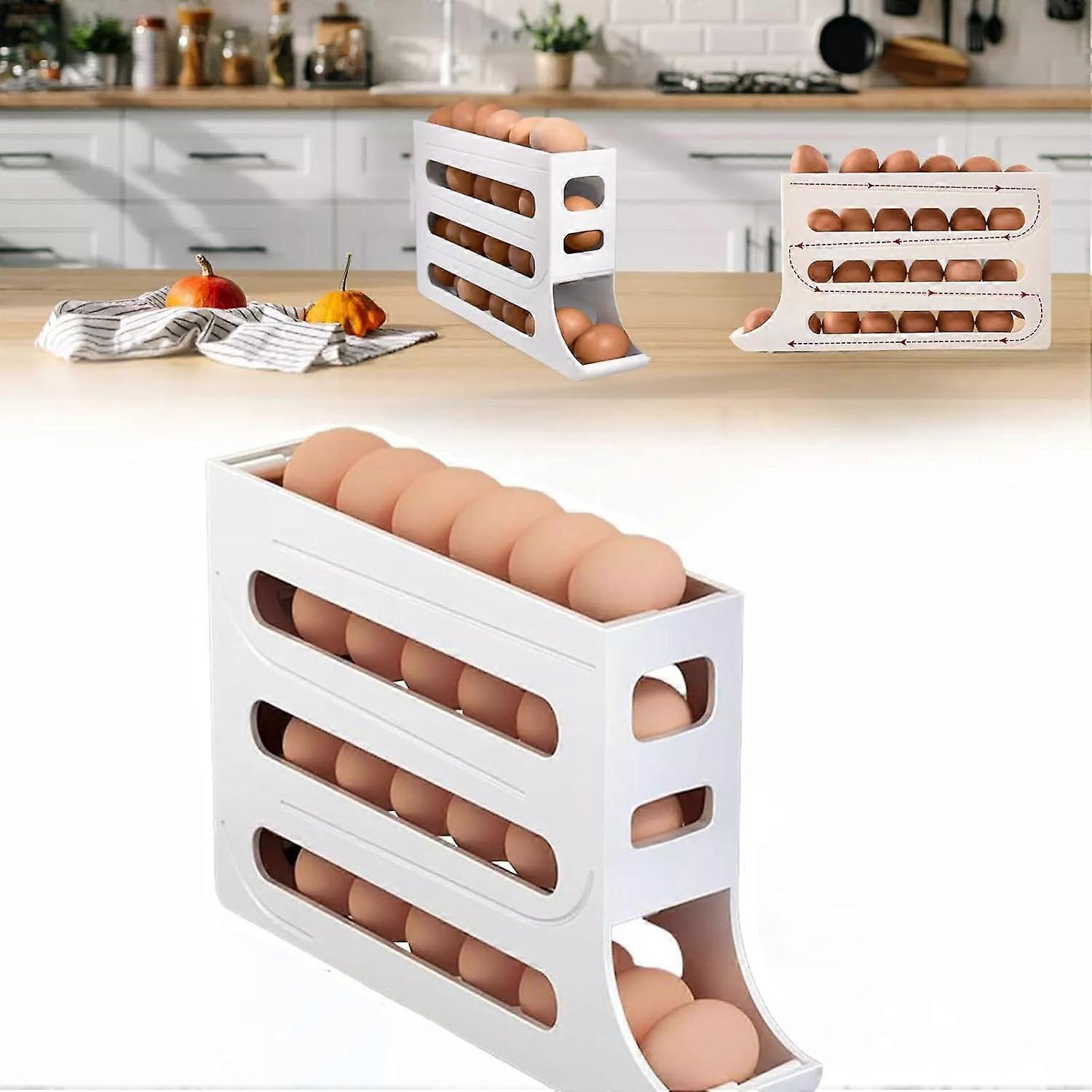 4-Tier Egg Holder for Fridge, Automatic Scrolling, Space-Saving, 30-Egg Capacity Organizer – Transparent (1PC)
