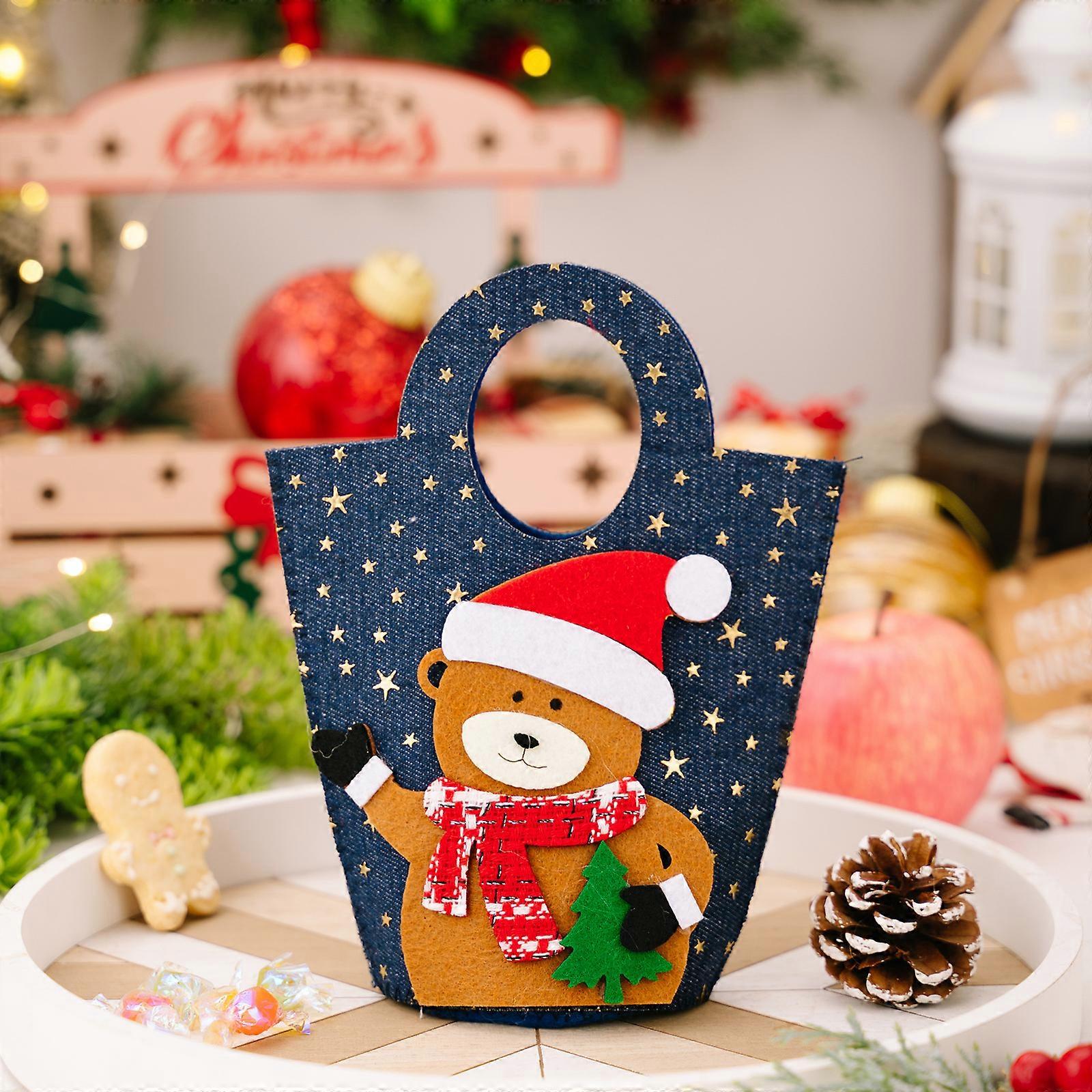 Christmas decorations creative denim handbag Christmas gift bag cartoon handbag elderly candy bag denim handbag bear style