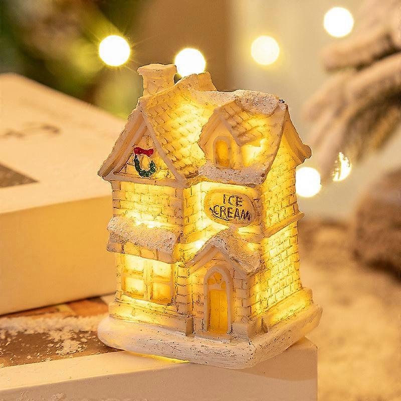 Christmas decorations cartoon resin small house LED light house Christmas micro landscape ornaments Christmas gift I white