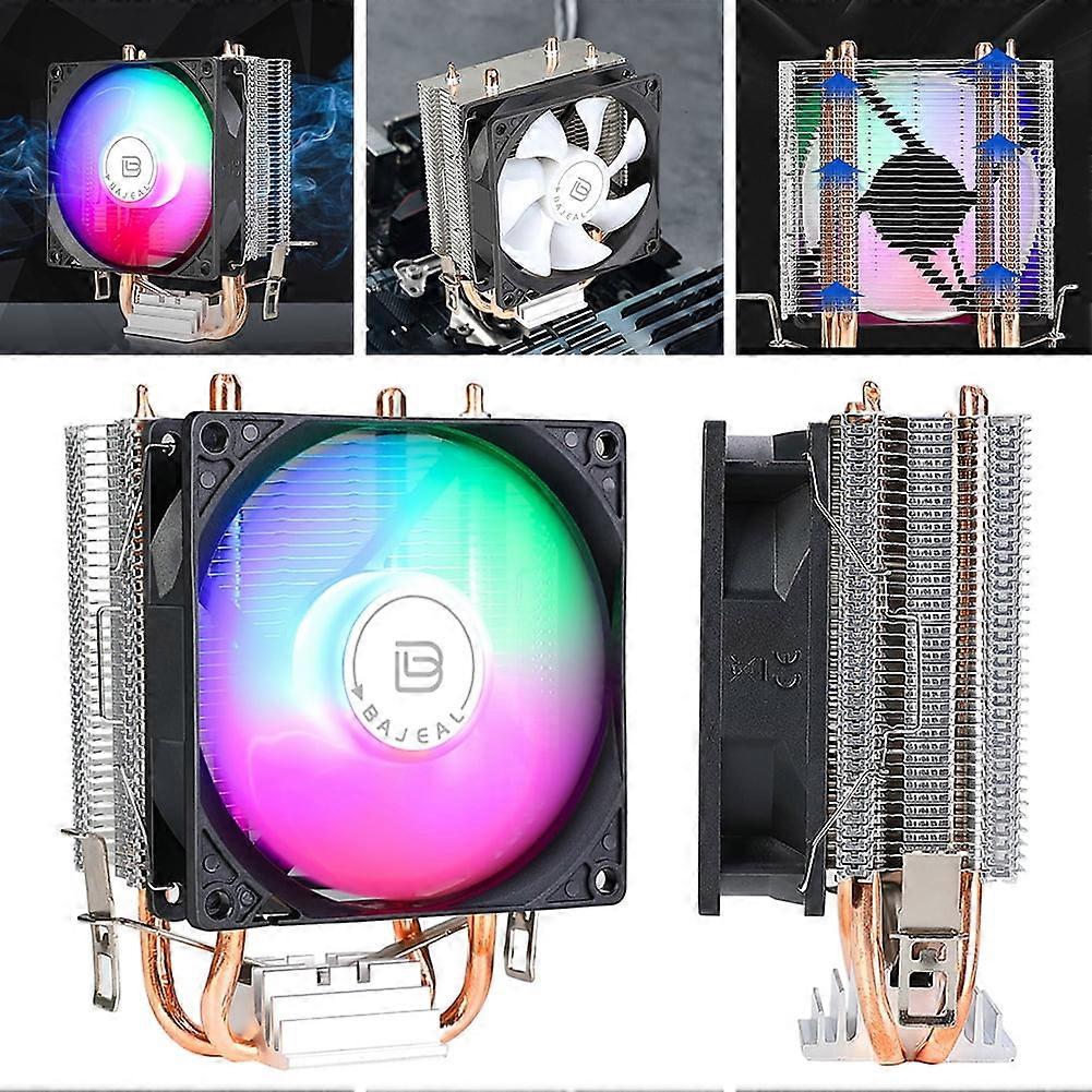 husxh 90mm CPU Cooler with 2 Heat Pipes Quiet Rainbow RGB Cooling Fan 3PIN CPU Cooling Fan for Intel LGA775 1150/1151/1155/1156/1200 AMD AM2