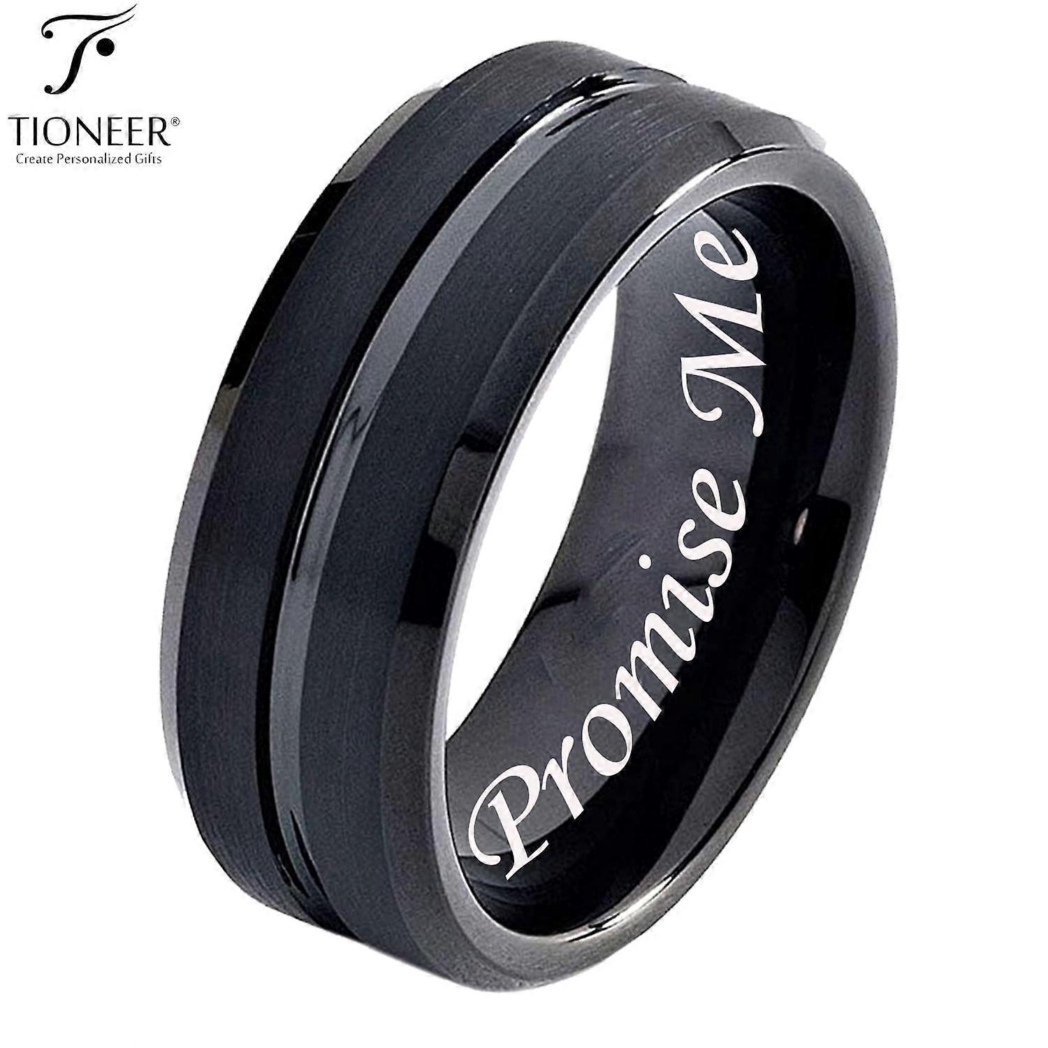 Tioneer Tungsten Carbide 8 mm Black Band with Groove Center Wedding Band Ring Men Women CZ Engraving