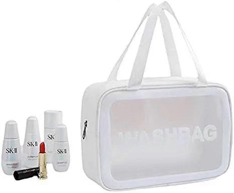 Clear Toiletry Bags, Waterproof Cosmetic Bag, Portable Makeup & Wash Bag Organizer for Travel - White, L