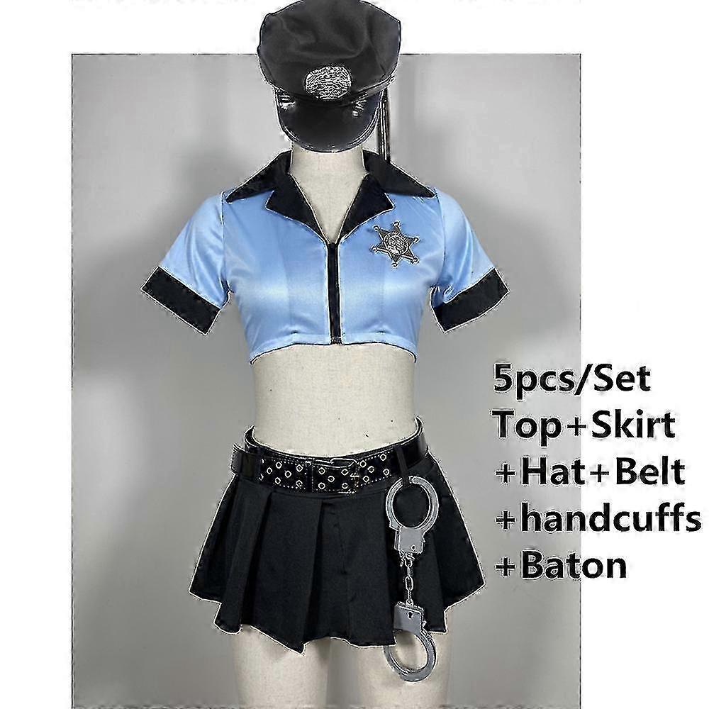 A Women's Sexy Cop and Policewoman Cosplay Police Outfit and Suit for Halloween, and an Erotic Role Play Game Costume for an Adult