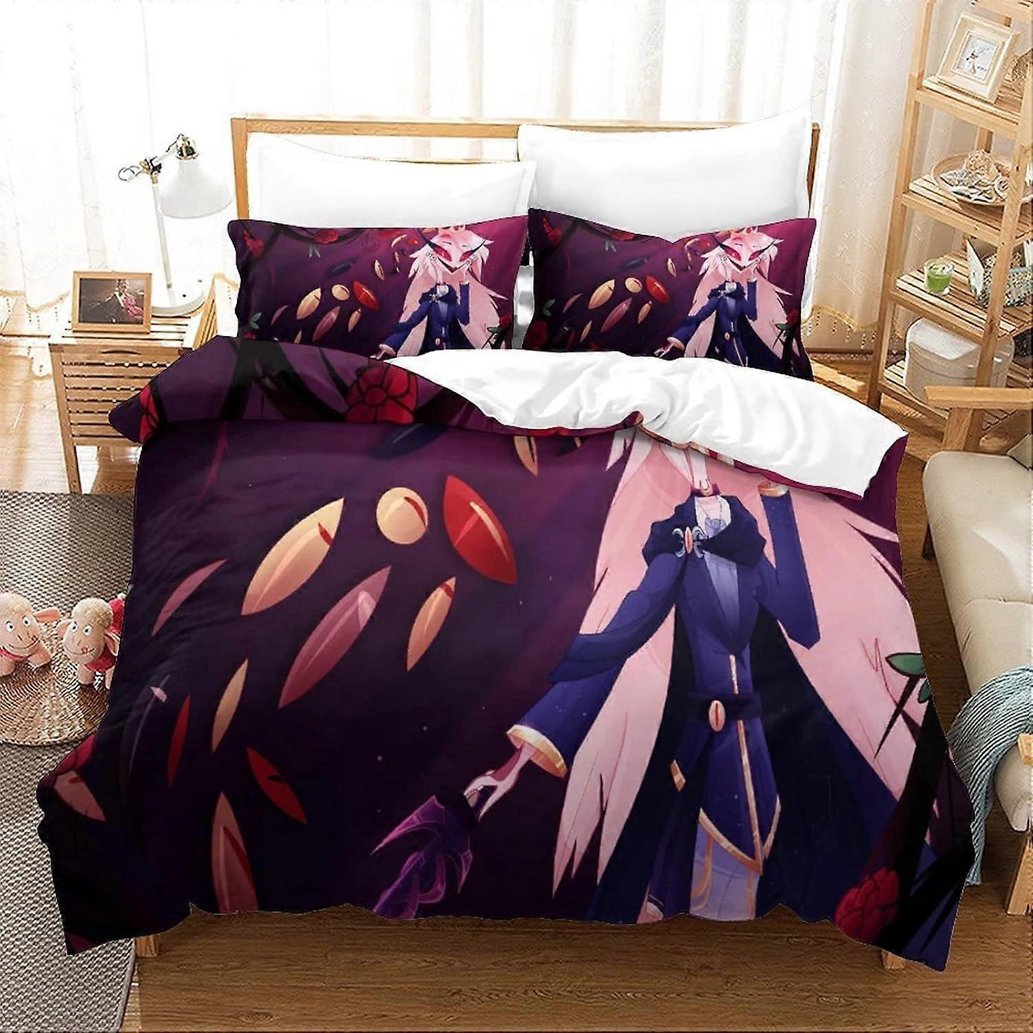 (bbyx42) Helluva Boss Verosika's Crew Loona Blitzo Moxxie King Size Bedding Quilt Cover 3D Printed Quilt Cover with Zip, Closed, with Pillowcase, Micr