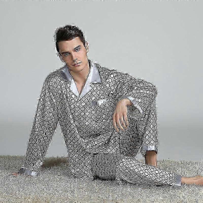 A 2025, New Men's Long Sleeve, Silk, Satin and Printed, Classic Luxury Silky Pajama and Sleepwear Set