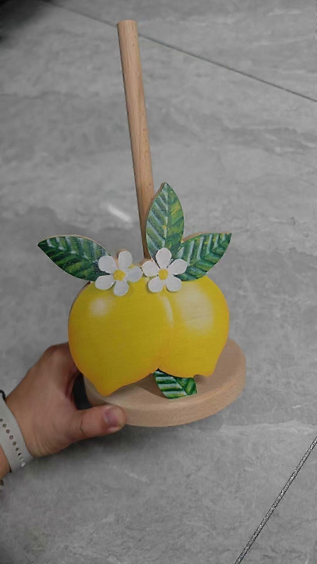 A 1 Set Lemon Shape Wooden Paper Towel Holder, a Standing Wood Roll Organizer and Tissue Rack for the Kitchen and Bathroom Countertop