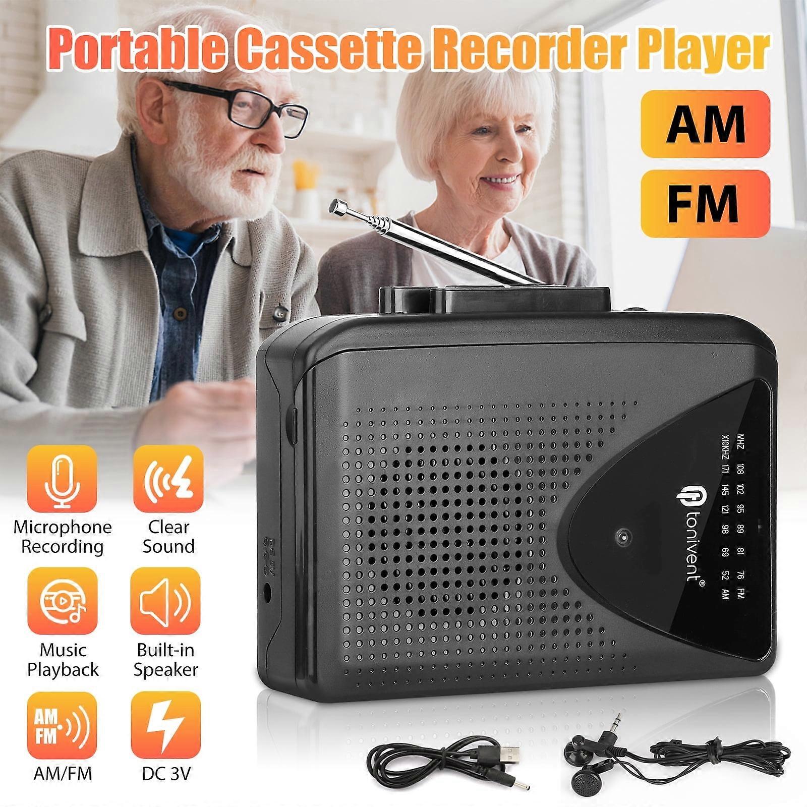 Portable Walkman Cassette Player, DISEN AM/FM Radio with Built-in Speaker & 3.5mm Jack, USB/AABattery Powered - Black