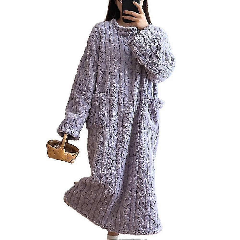 A Women's Thicken, Long Sleeve, Winter Night Dress, a Soft Coral Velvet Sleepwear