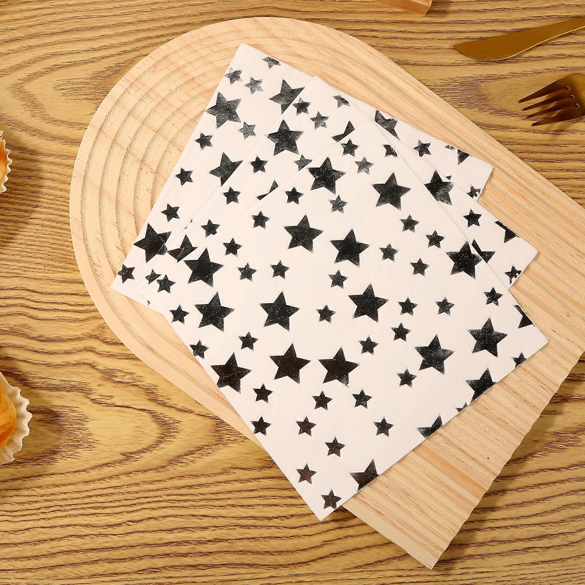 New party printed napkins, paper towels, party table atmosphere decoration props, printed napkins, black star print 20pcs