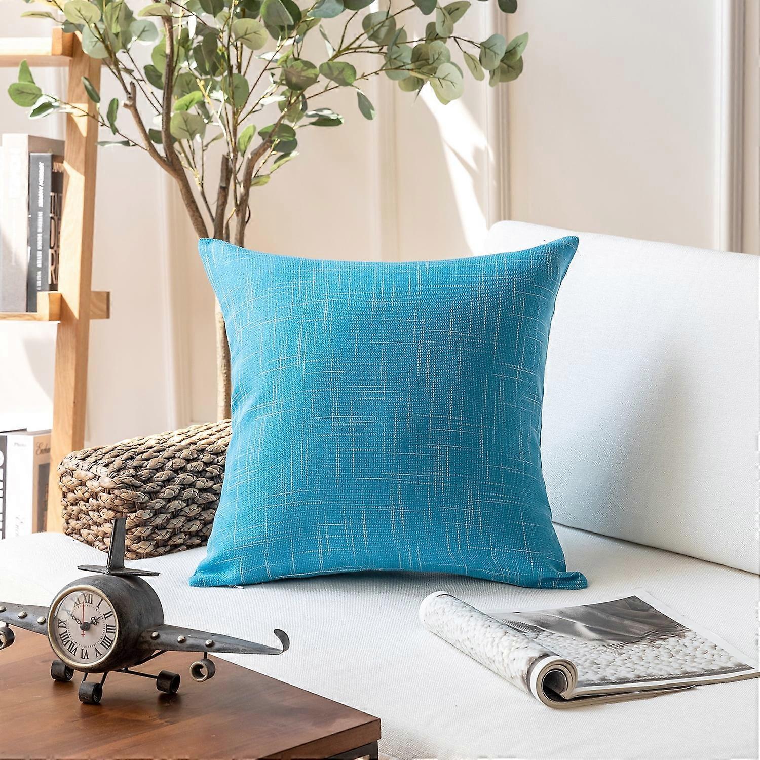 Phantoscope Soft Textured Linen Burlap Series Decorative Throw Pillow, 22" x 22", Lake Blue, 1 Pack
