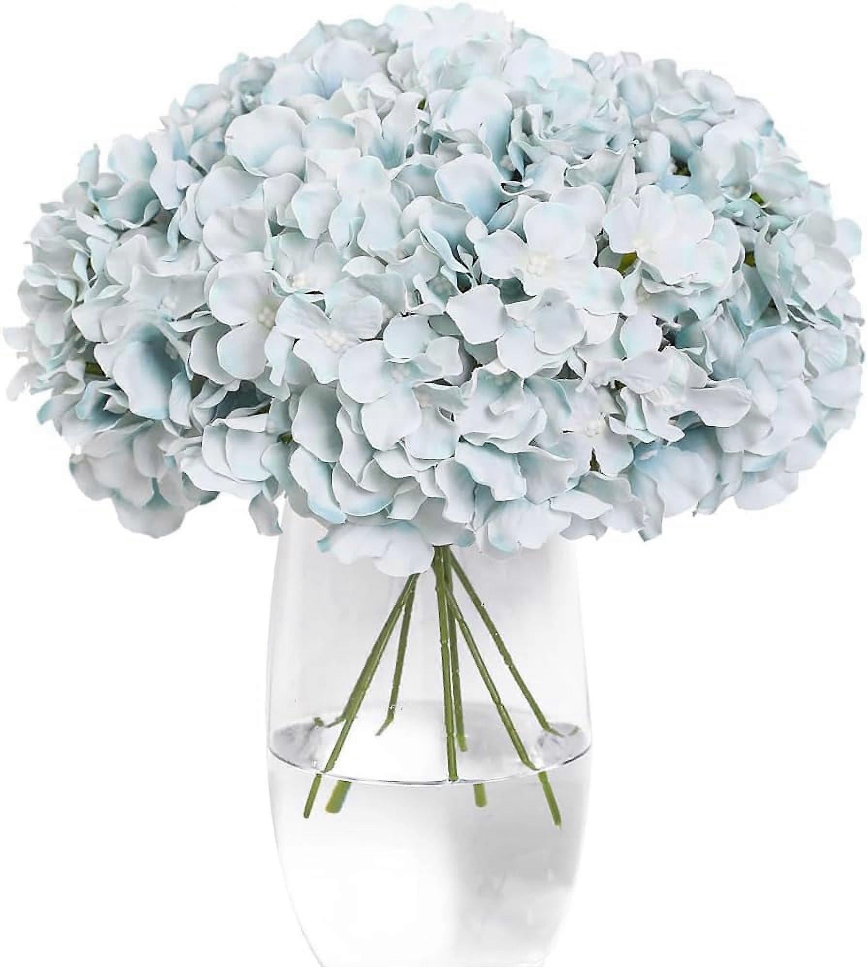 Hydrangea Artificial Flowers with Stems, 12pcs Sky Blue Silk Flower Heads for Home, Office, Wedding, Party Decor, DIY Centerpiece Bouquets