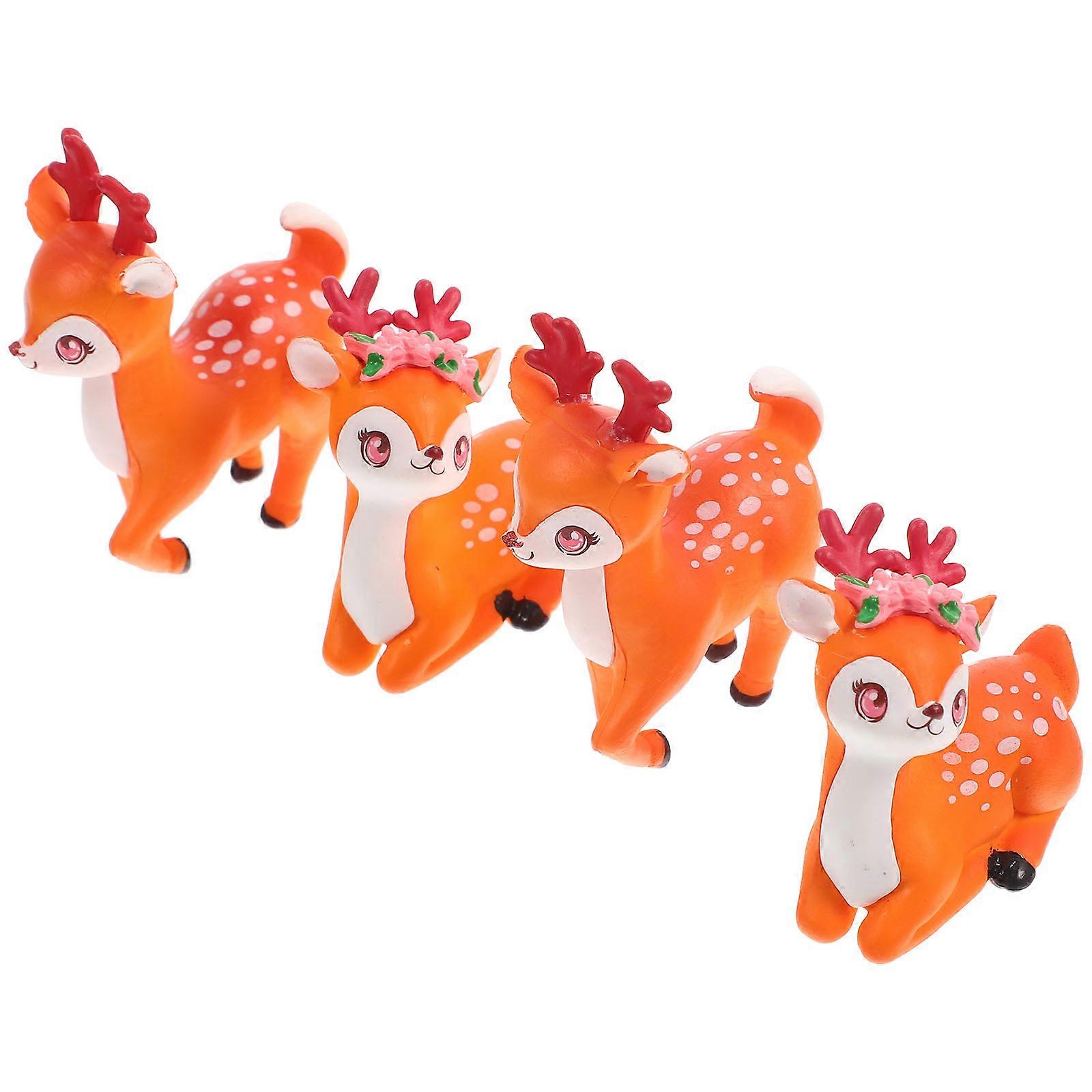 Deer Statue Decor Cartoon Deer Figurines for Decor 16Pcs Orange Set