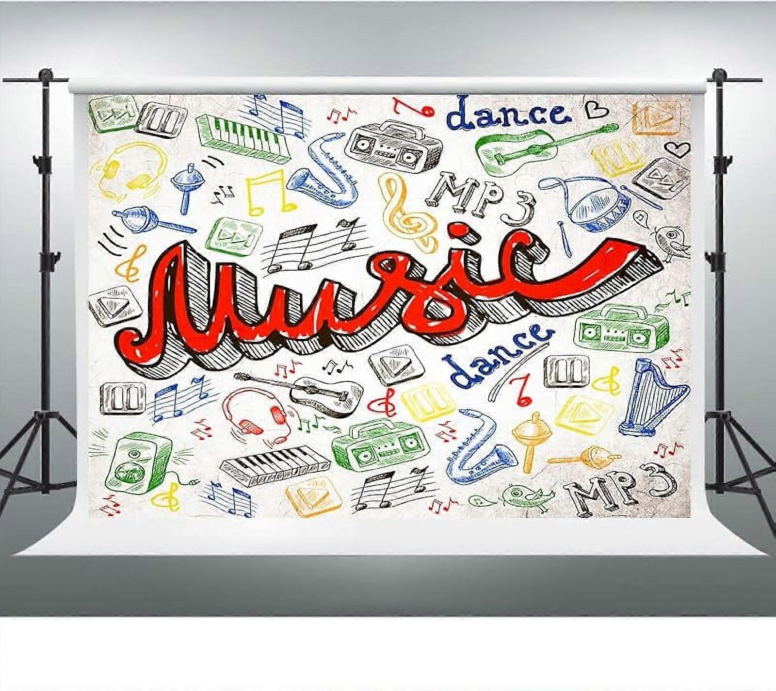 Music Notes & Rock Guitar Background for Concert, Birthday Party Decor, Photo Studio Set - Compatible with Pop Music Events