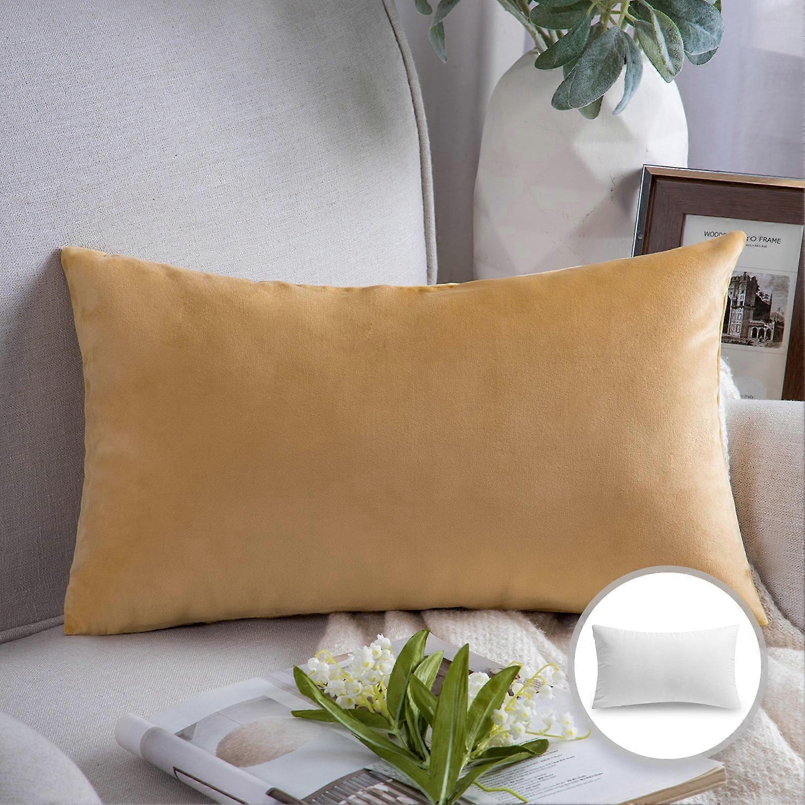 Phantoscope Soft Silky Velvet Series Decorative Throw Pillow, 12" x 20", Light Brown, 1 Pack