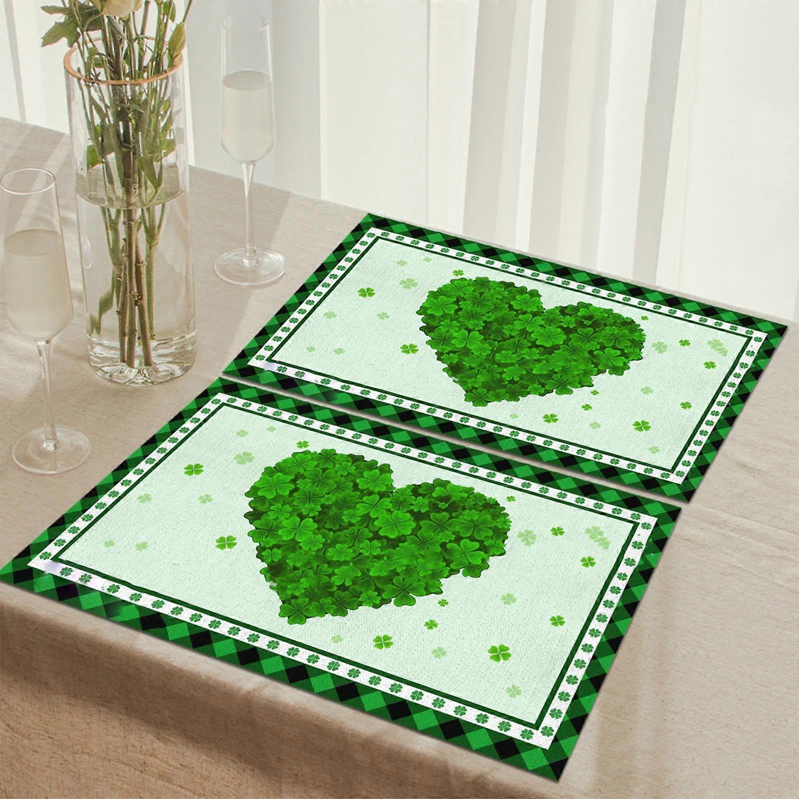 St Patricks's Day Placemats Scandinavians Irish Day Plaid Decorative Placemats Insulated Tablecloths Features: Exquisite design: the design is printed on friendly materials, and will not fade. Looking great, our designs are designed to create the best for you your table from scratches and stains, non-slip and heat , durable. All placemats are machine-cut, burr- and very delicate Washable and easy to clean: hand wash in warm soapy water, rinse and dry quickly, if the placemats are heavily stained use a brush and soapy water to clean They a festive to your home and can a lot of fun and joy to your meals and your life, enjoy your dinner! The rectangular design fits most tables and makes a great decoration for a pleasant dining experience. Product Description: Material: Polyester Colours and styles as shown Set includes: 1 × placemat Caution. Due to manual measurement, please allow 1-2 cm measurement deviation. Due to differences between monitors, the picture may not reflect the actual colour of the item. Thank you! Festive St. Patrick's Day Design: Features shamrocks, leprechaun hats, rainbows, and gold coins to enhance your holiday décor. Durable and Reusable: Made from high-quality materials, perfect for long-term use and seasonal celebrations. Versatile Decoration: Suitable for decorating tables, mantels, walls, doors, and party spaces. Perfect for Festive Gatherings: Ideal for St. Patrick's Day parties, family dinners, and themed events. Enhances Holiday Spirit: Adds a cheerful and lucky vibe to your home, making the celebration more memorable.