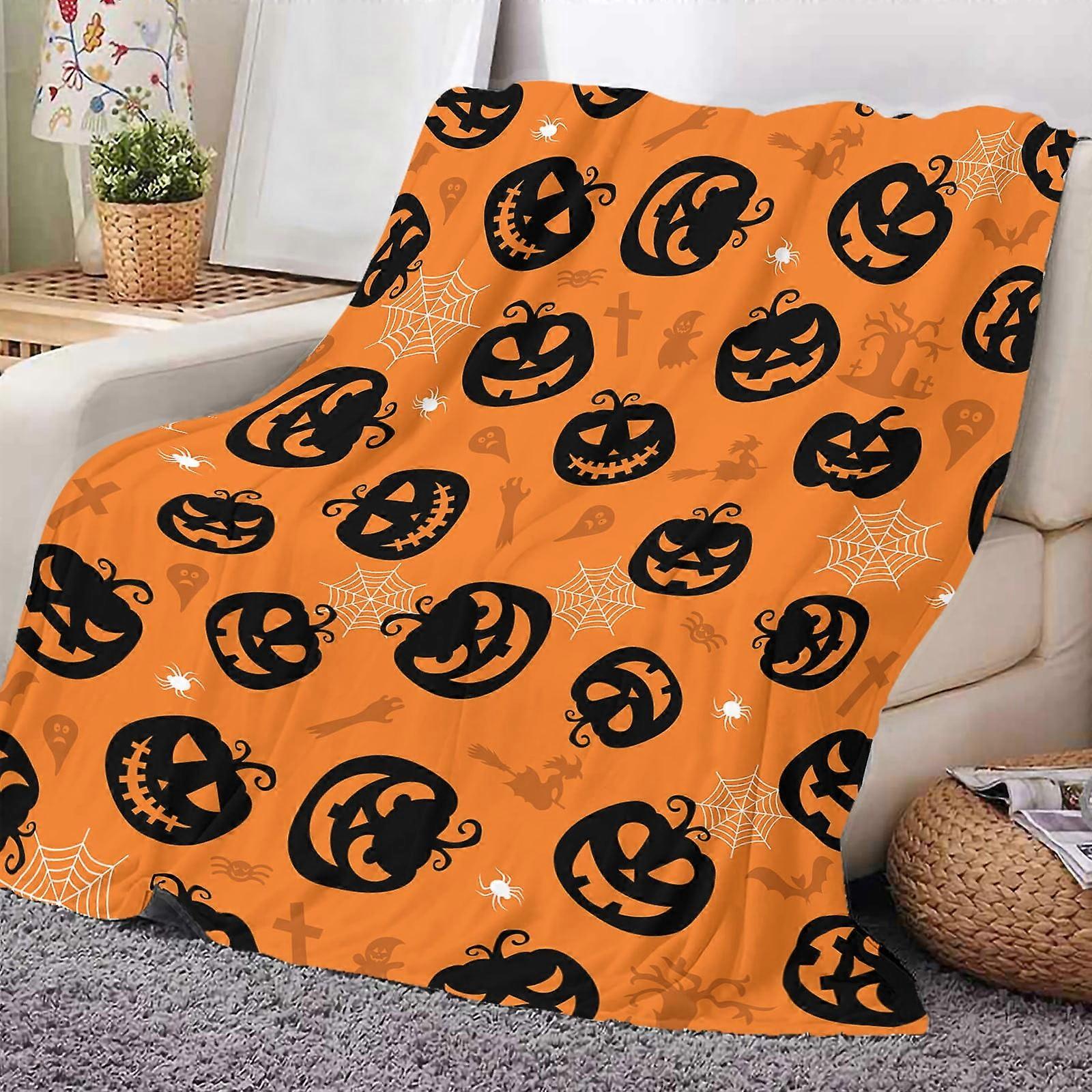 Halloween Blanket 60x51in, Orange Pumpkin Face Flannel Fleece Throw for Home Living Room Bed Chair Decor, Halloween Gifts for Women