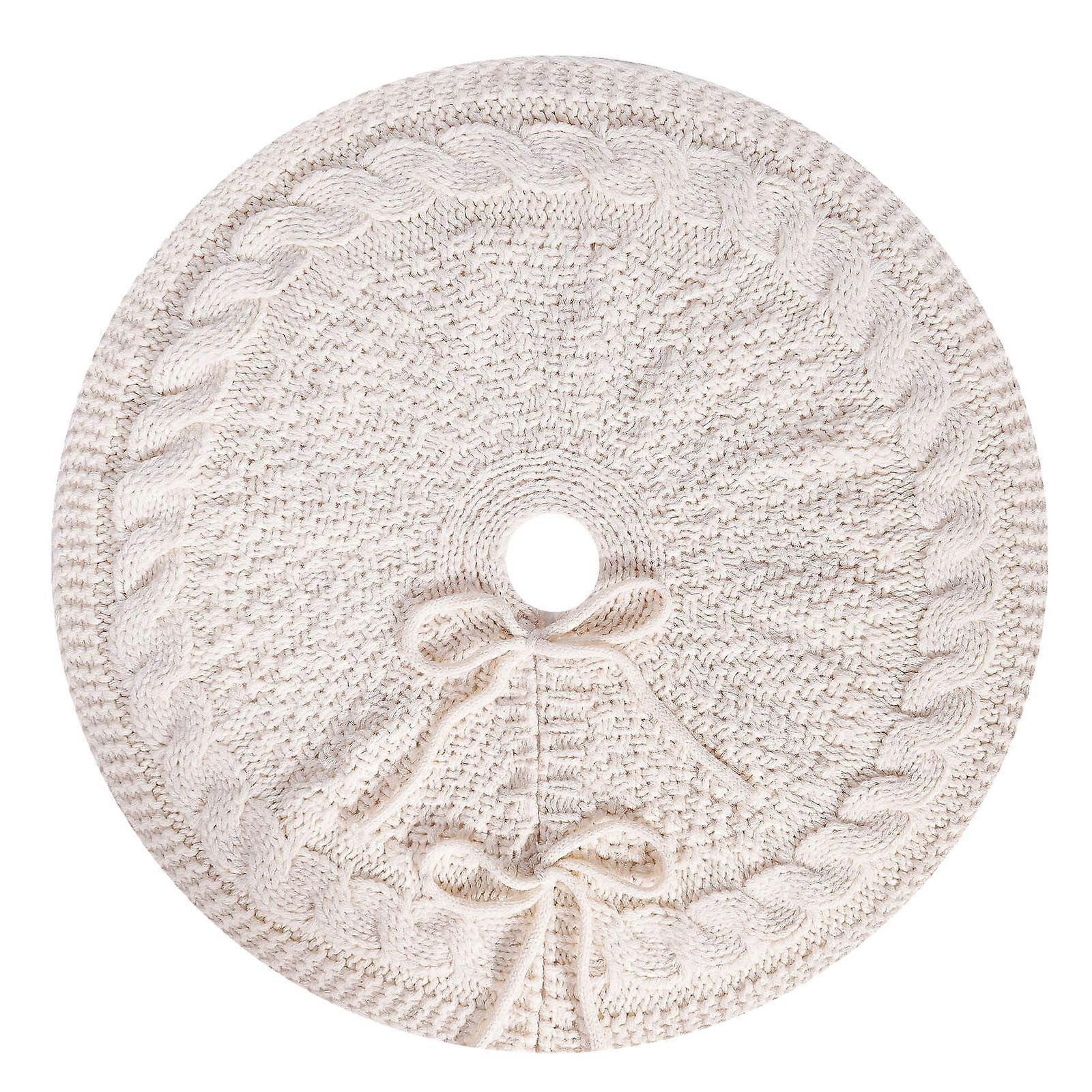 18" Knitted Christmas Tree Skirt, White, for Xmas Holiday Home Party Decor