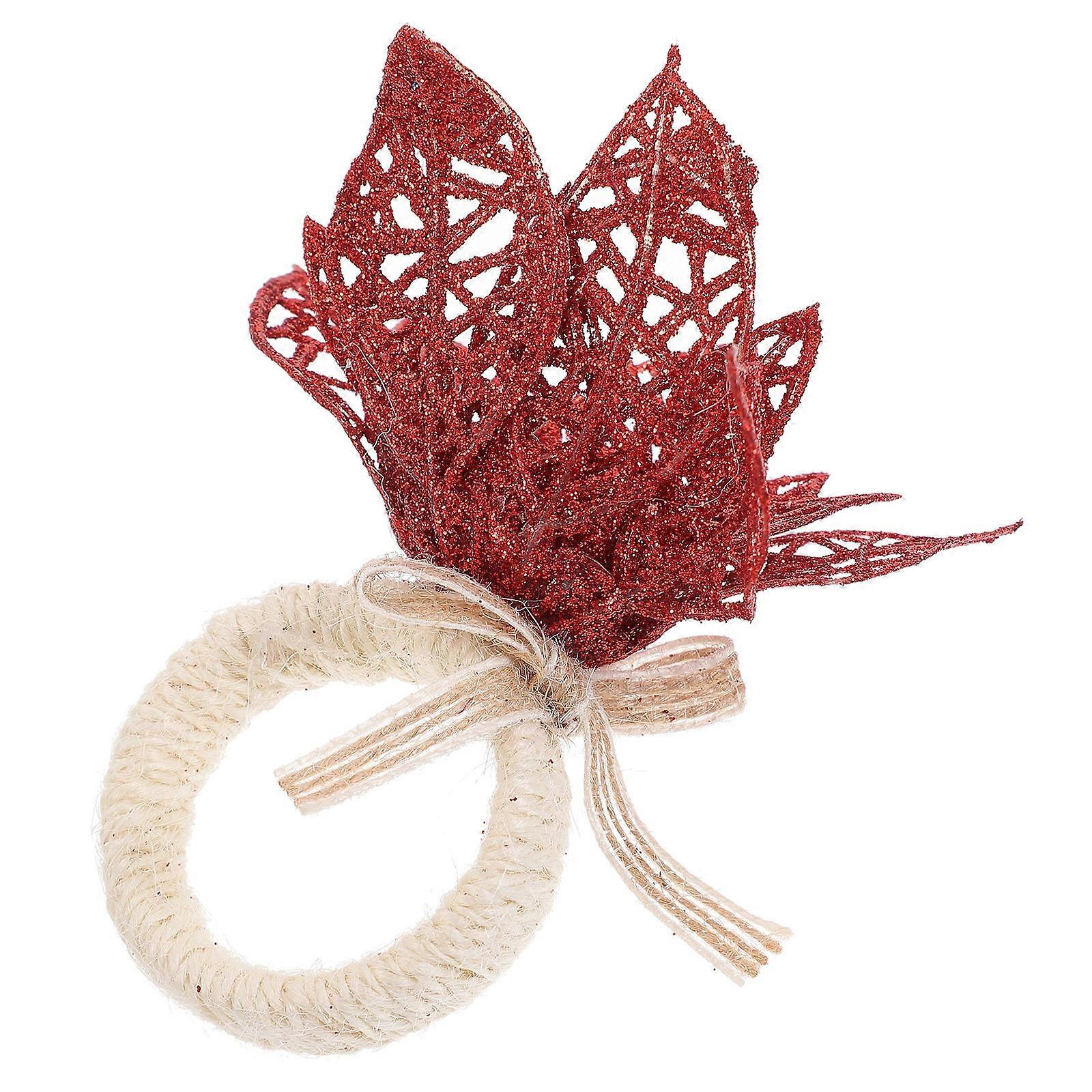 Red Christmas Flower Napkin Ring Plastic Holder for 3Pcs Holiday Party