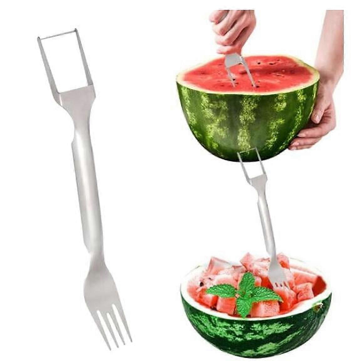 FensXil 2-in-1 Stainless Steel Fruit Cutter, Watermelon Slicer & Fork, Portable Windmill Cutter Tool for Home, Party, Camping Compatible with Fruits