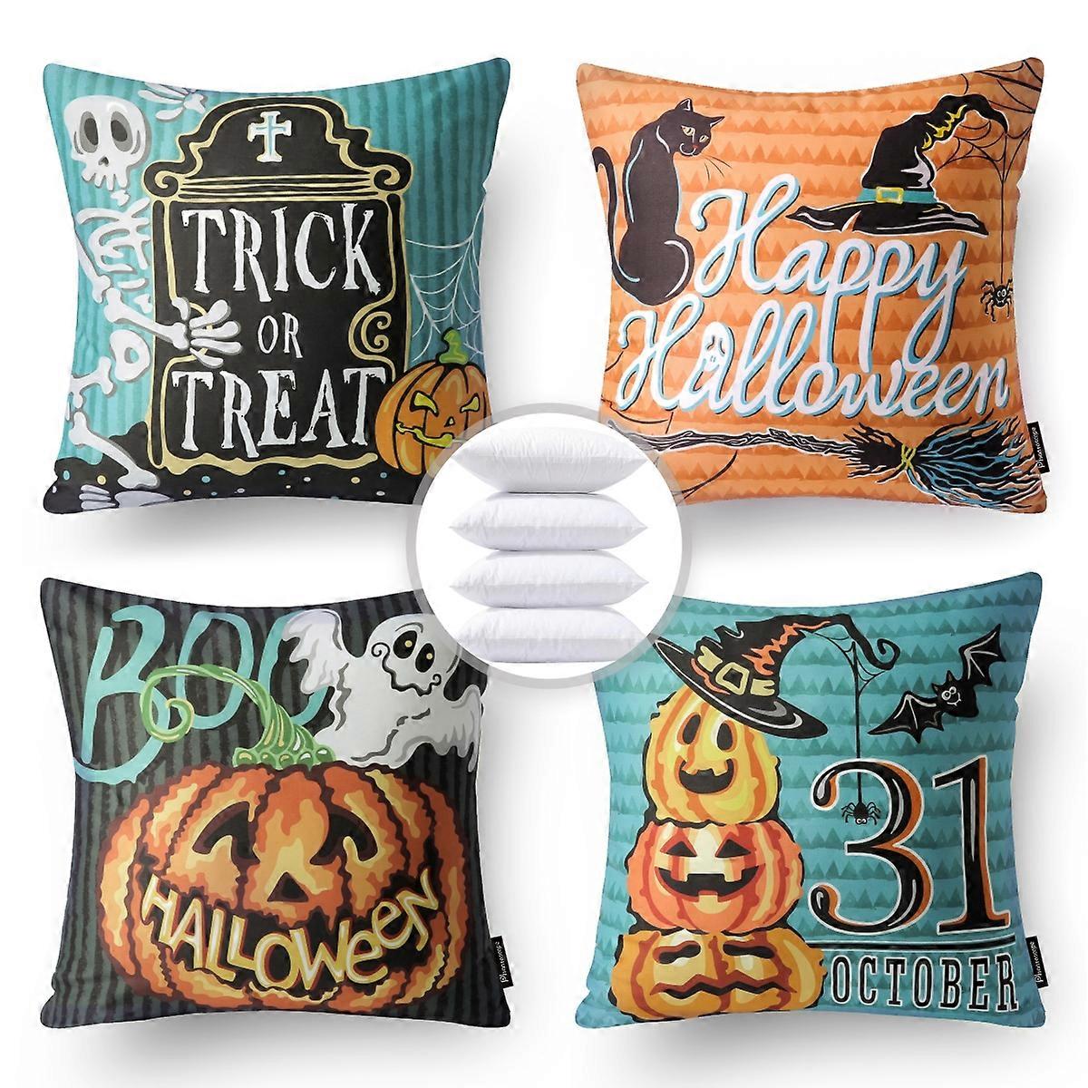 Phantoscope Halloween Holiday Collection Decorative Pillows, 18" x 18", Orange Pumpkin, 4 Pack