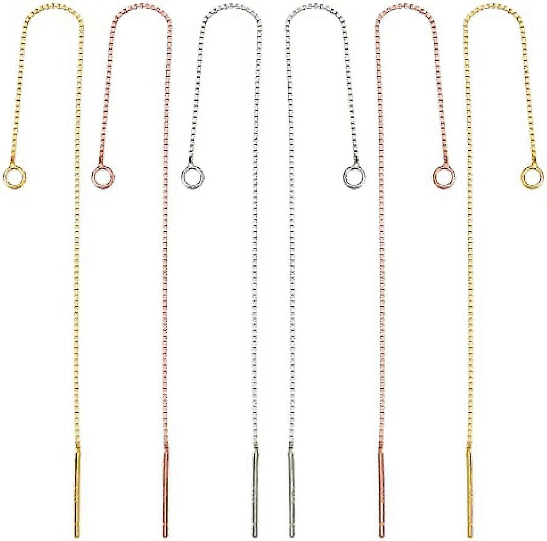 3 Pairs 3 Colors Threader Earrings Sterling Silver Tassel Threader Drop Earrings Long Chain Ear Line
