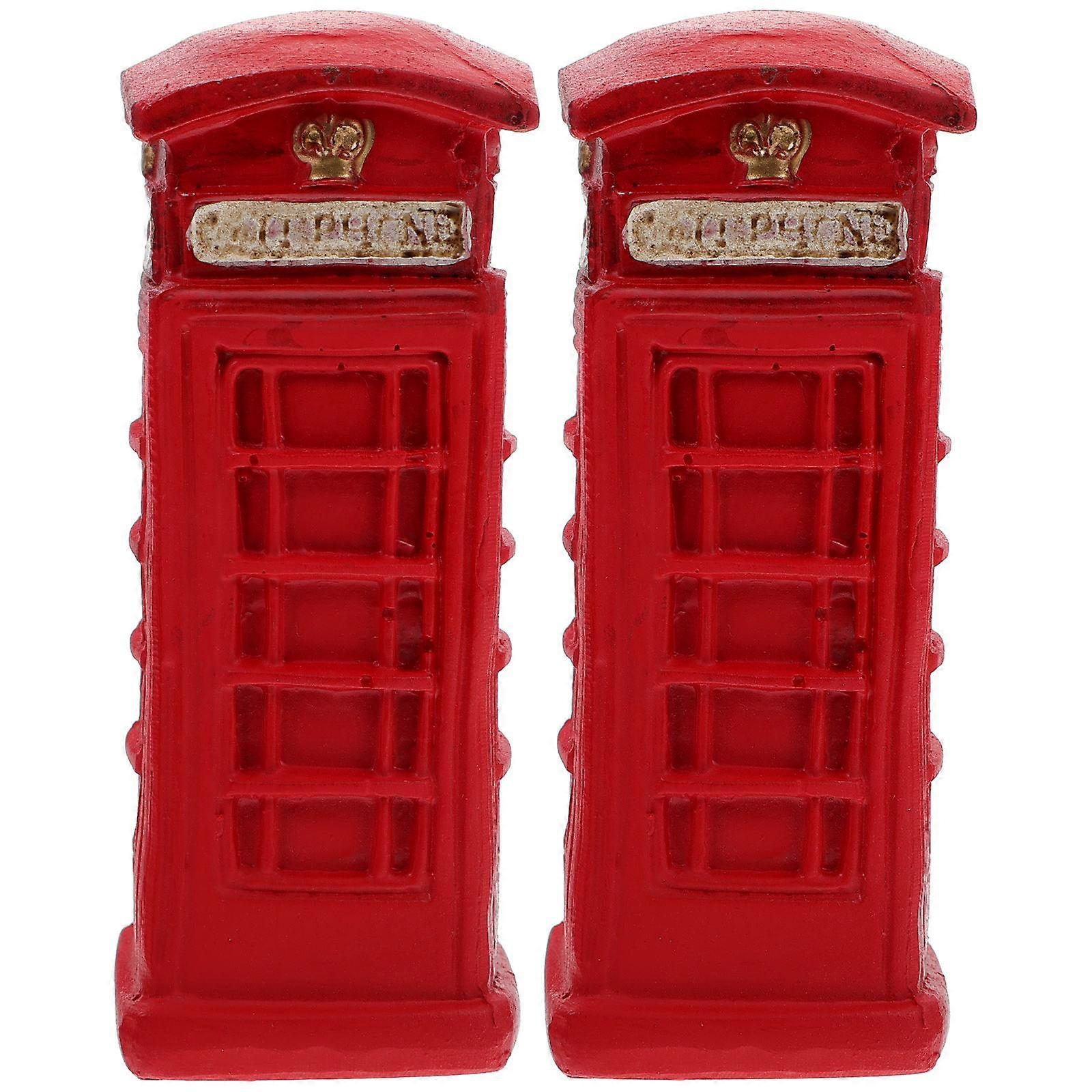 Retro Mini Resin Telephone Booth Model Sculpture for Decor 2Pcs