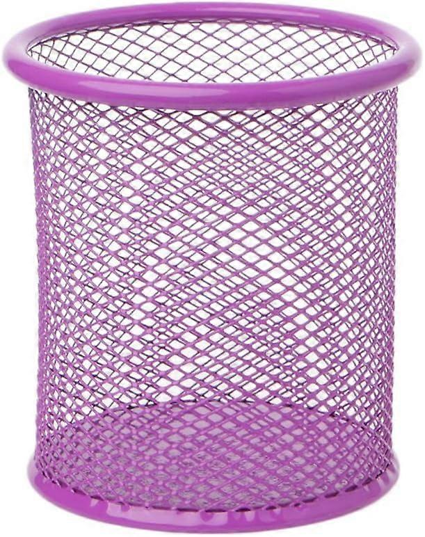 Desk Supplies Organizer, Mesh Pen Holder Metal Pencil Holder Pen Containers (Round, Purple)