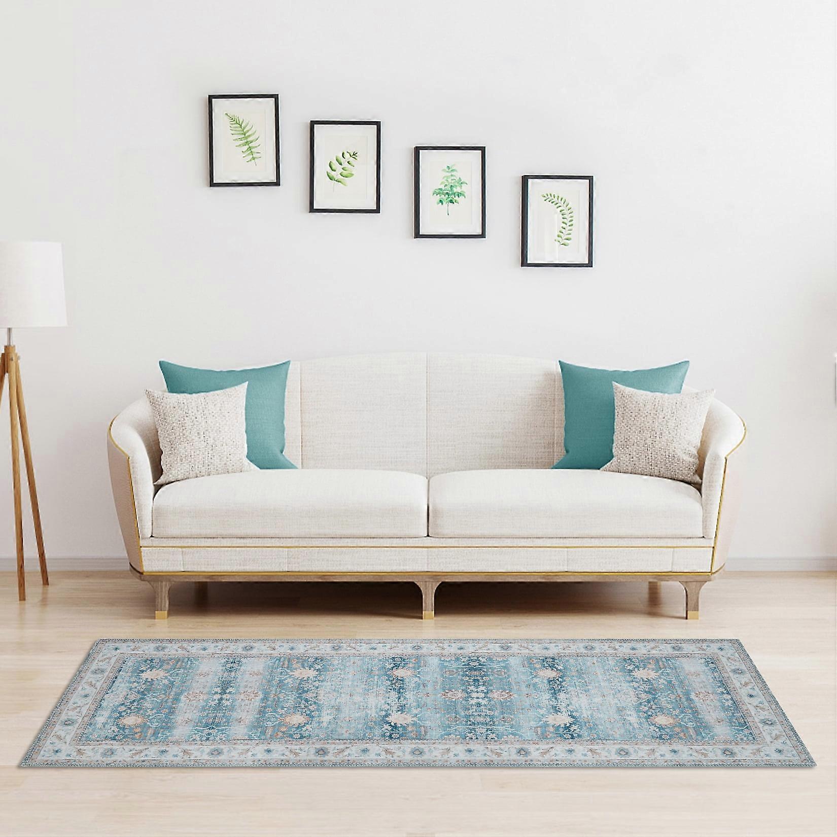 Haperlare Runner Rug 2' x 10' Pale Green Floral Distressed Carpet Machine Washable Rug Runner for Hallway Non-Slip for Bedroom Living Room
