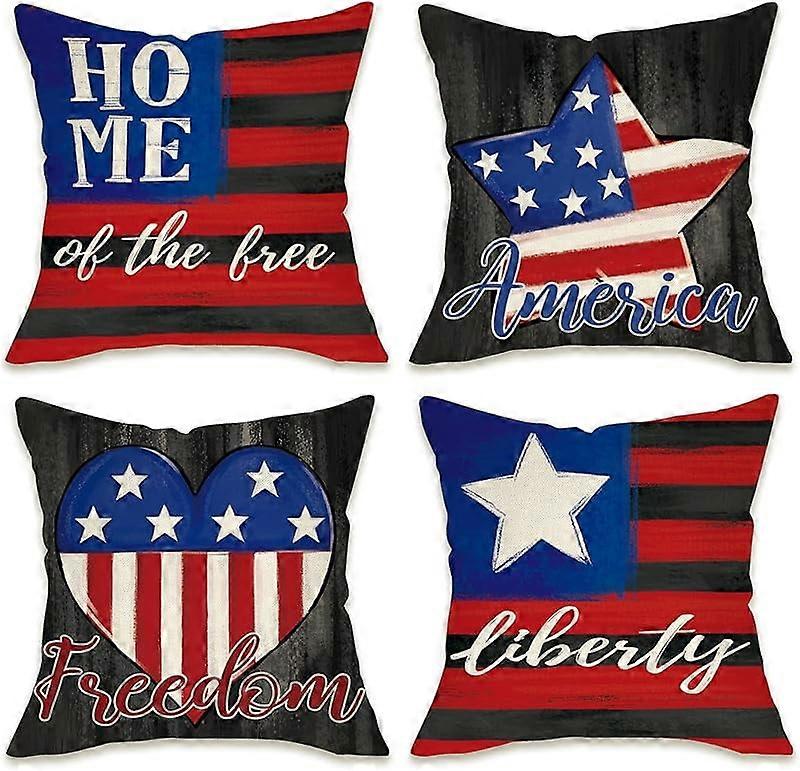 4th of July Patriotic Throw Pillow Covers 18x18 Set of 4, USA America Love Heart Independence Day Outdoor Pillowcase, Blue Red White Stripes Stars