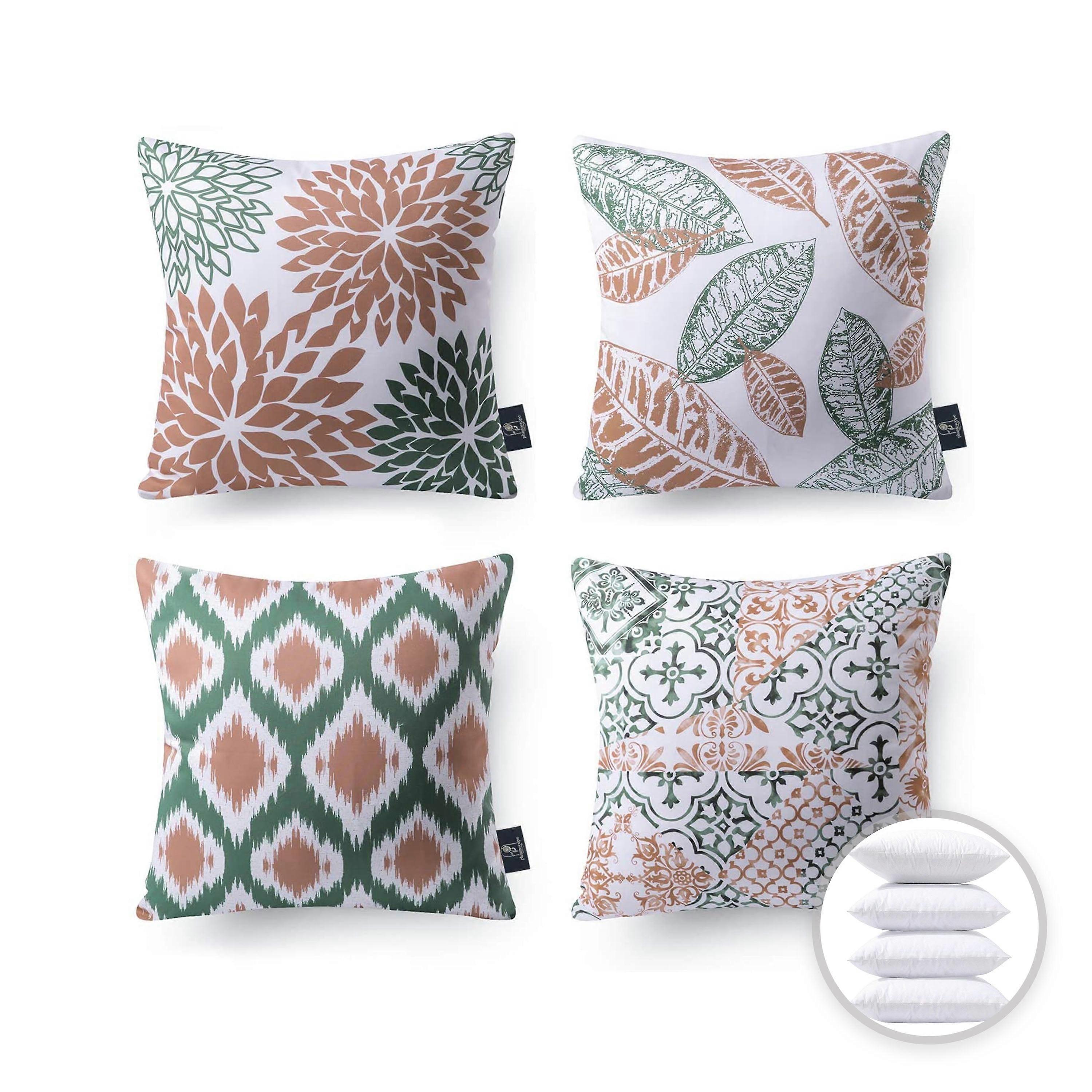 Phantoscope New Living Series Duplex Printing Decorative Throw Pillow, 18" x 18", Caramel/Green, 4 Pack