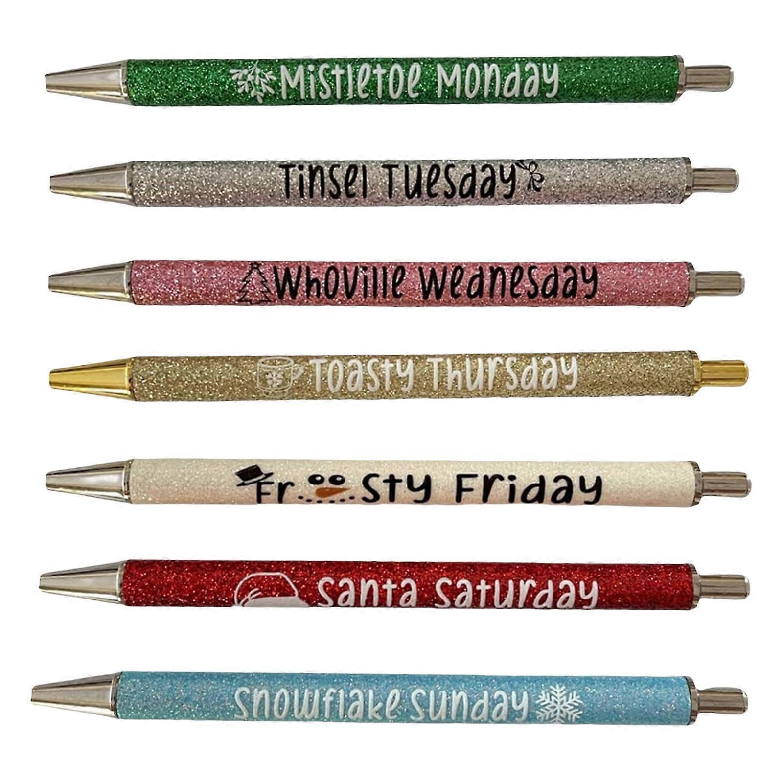 7PCS Halloween Glitter Pens 8ml, Compatible with School Supplies & Office Decor, Funny Witchy Pens for Weekday Use