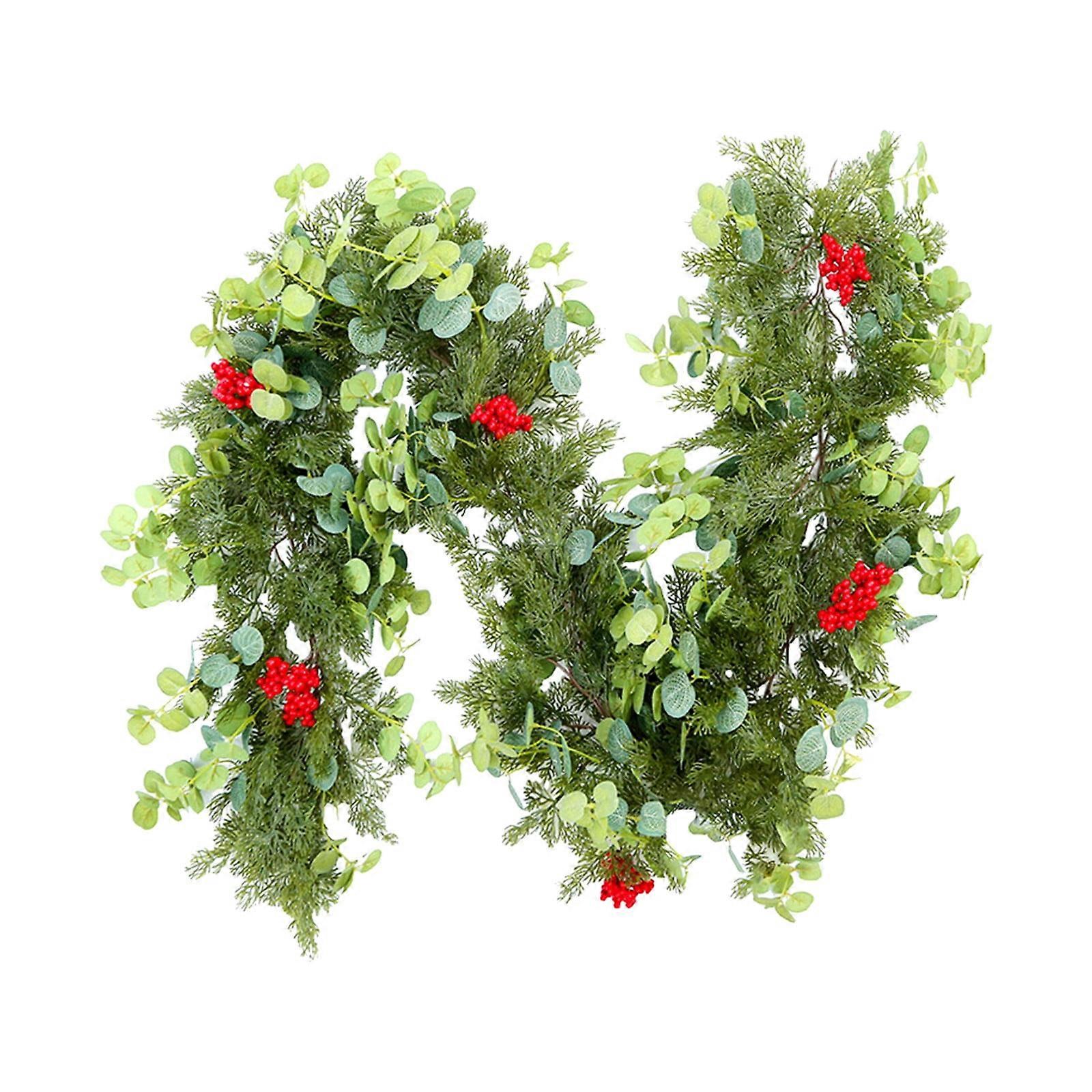 Clearance! Indoor Christmas Garland with Pines, Needles, Green Leaves & Red Berries - Party Atmosphere Decoration