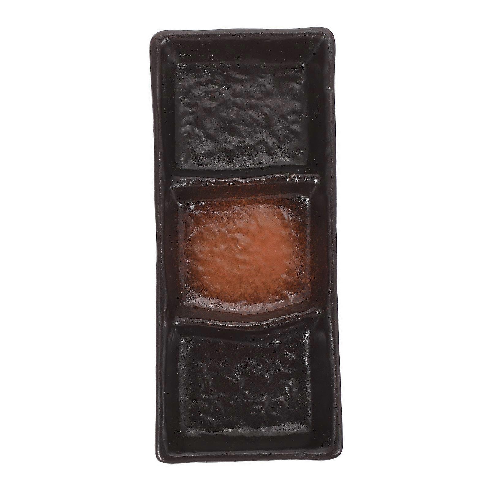 Orange Ceramic Sushi Plate for Serving 2Pcs Three Grid Sauce Dishes