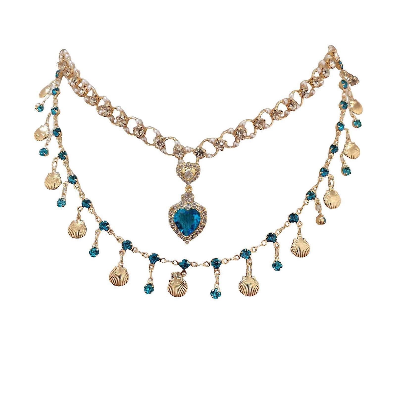 ZHENYANGli Beach Aquamarine Diamond Tassel Necklace Aquamarine Zirconia Tassel Necklace Stacking Haute Sense Summer Chain Vintage Collarbone Chain
