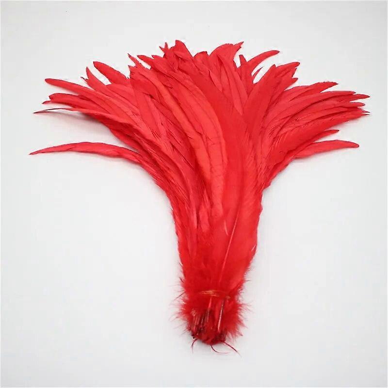 Beatiful 50pcs Natural Cock Tail Feathers 25-40cm / 10-16inch Clothing Decoration Stage Performance Rooster Tail Feathers Plume Red 35-40cm