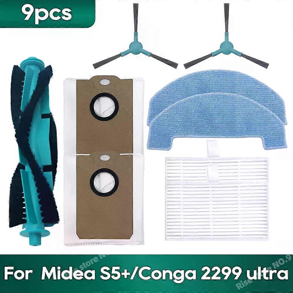 Fit for Midea S5 Plus, Conga 2299 Ultra Home X-Treme Genesis Vacuum Accessories Dust Bag Hepa Filter Roller Side Brush Mop