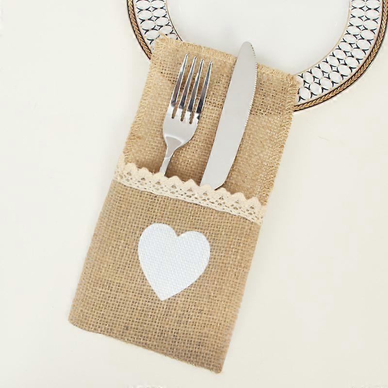 2025 Christmas Holiday Cutlery Set Linen Lace Cutlery Bag Party Wedding Festival Cutlery Bag White Love Style 11*21cm
