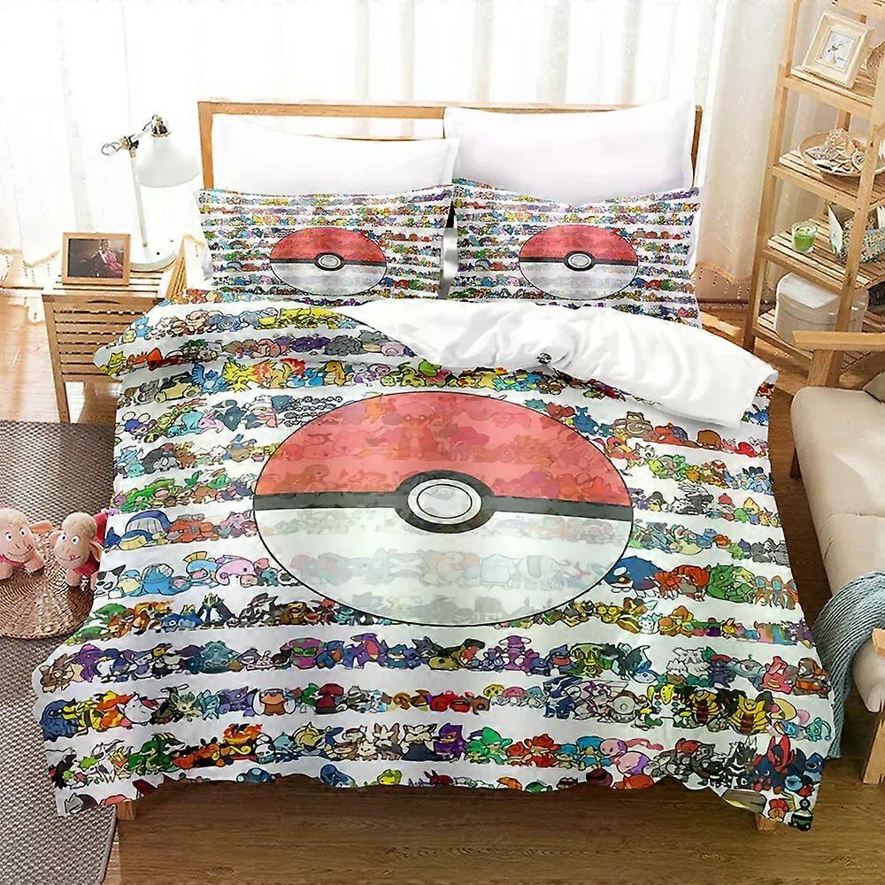 (bbyx379) Pocket-Monster Gengar Pikachu Pikachu 3D Children'S Bedding Set Printed Children'S Duvet Cover 3-Piece Home Christmas Gifts