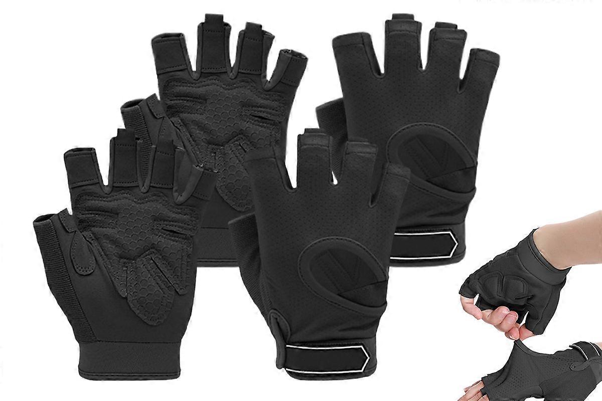 2Pairs Durable Half Finger Fitness Gloves for Gym Workout Men and Women-Pink