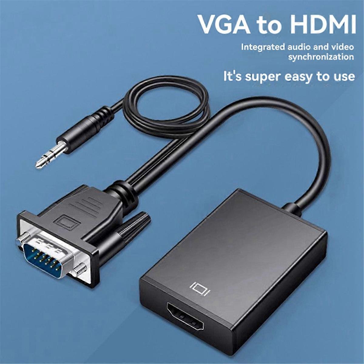 Universal Compatibility: This VGA to HDMI Converter/conversion head is perfect for connecting devices with VGA outputs to HDMI-enabled displays. Ideal for use with PCs, gaming consoles like for PS4 and for PS5, set-top boxes, and more. Enhanced Audio and Video Quality: Experience high-definition video and flawless audio mission with integrated audio support and an external power supply to enhance signal conversion. Easy Installation: No need for complex configurations or software installations. Simply plug and play to enjoy a seamless display setup. Durable and Reliable: Built with high-quality materials to ensure durability and reliability for prolonged use. Compact design makes it easy to carry and use on-the-go. Due to different batches, there may be differences in product appearance, color, and printed text, which will not affect the use. Specification:A:VGA to HDMI converter/B:VGA to HDMI conversion head Color:Black Material:Plastic+Metal Package Contents: 1 * VGA to HDMI-Compatible Adapter Only the above package content, other products are not included. Note: Light reflection and different displays may cause the color of the item in the picture a little different from the real thing. The measurement allowed error is +/- 1-3cm.
