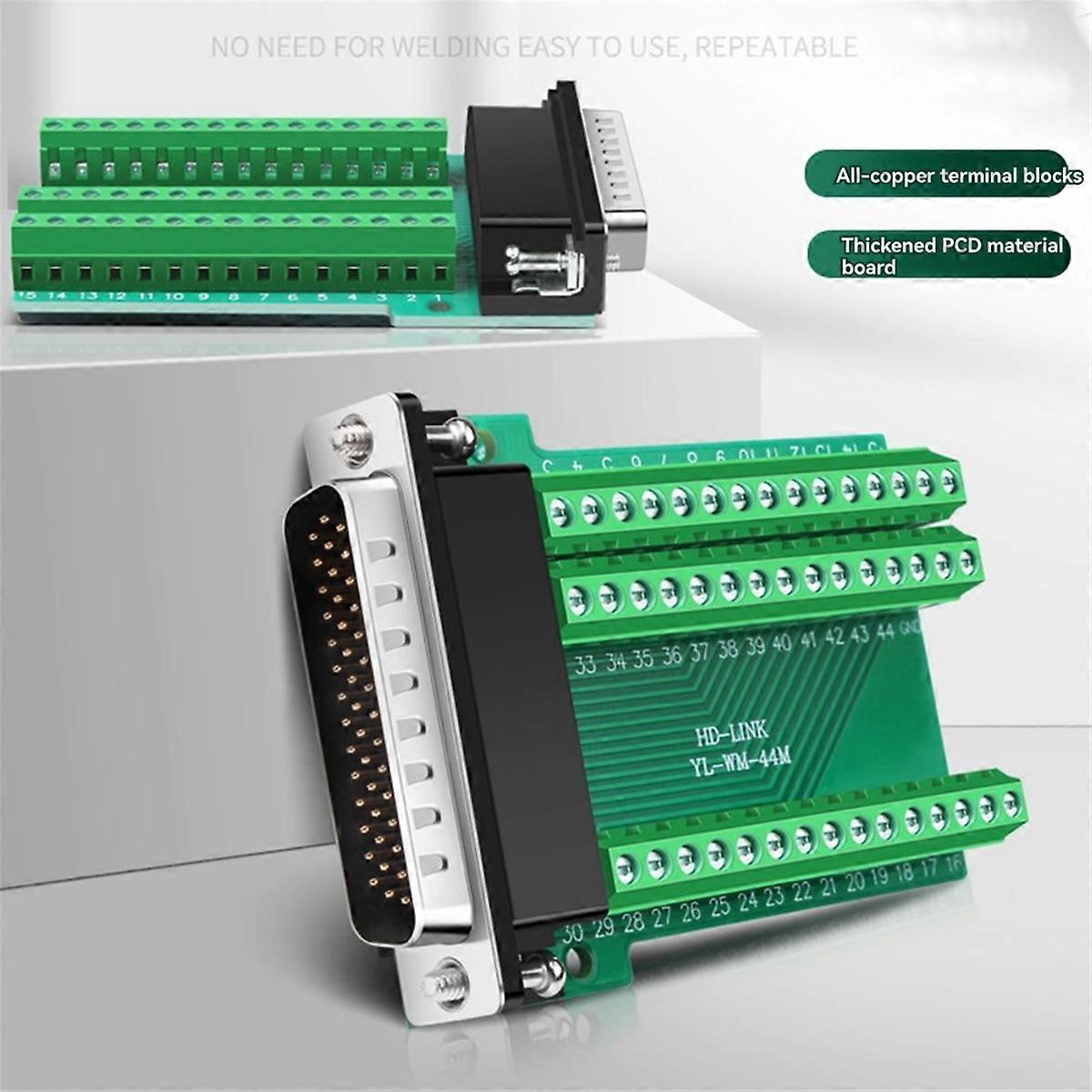 HDB44 Solderless Connector Industrial 3 Rows D-SUB 44Pin Male P Hole Plug Breakout Terminal Board Ad