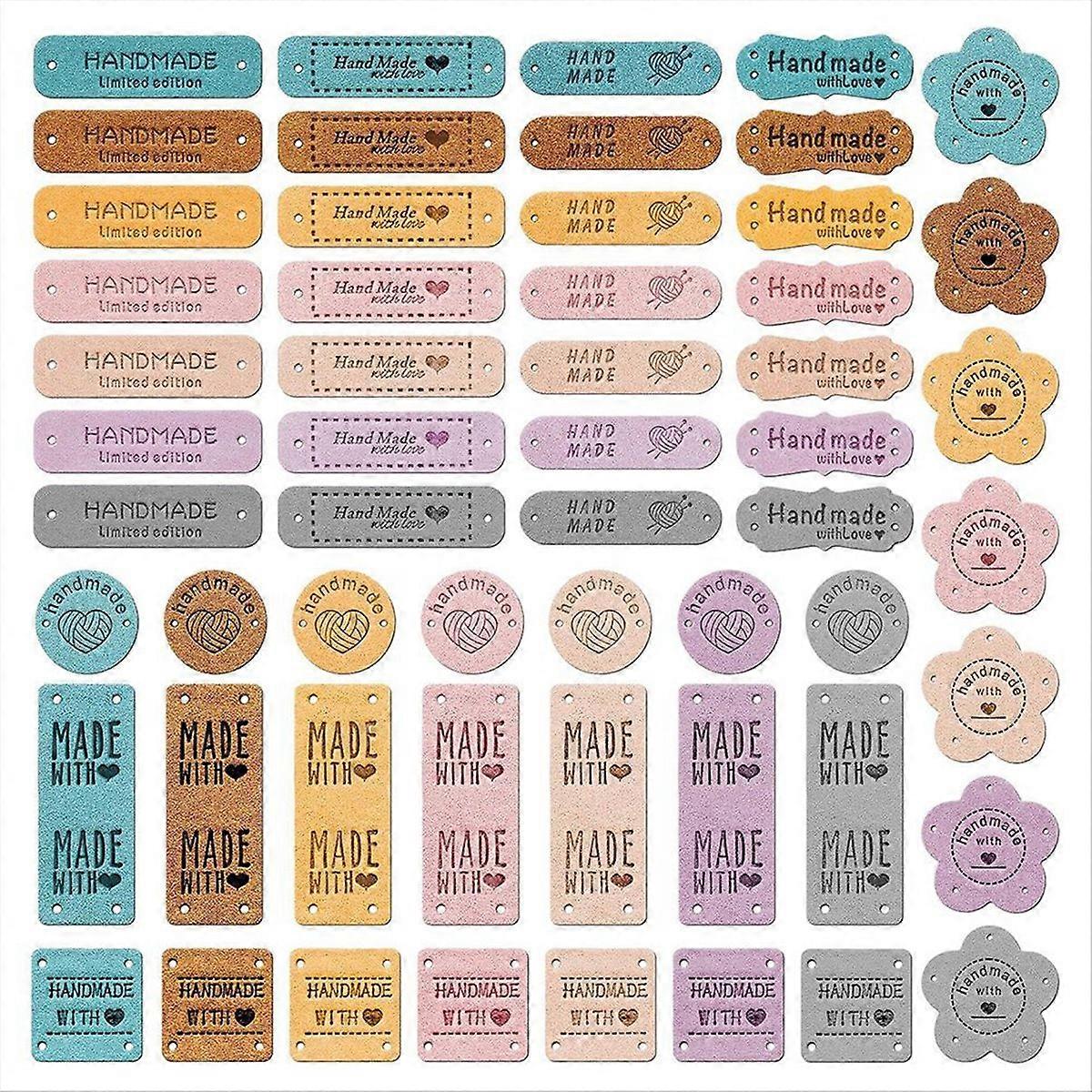 56pcs Handmade Leather Labels,Handmade Leather Labels for Crochet,Colorful Leather Labels for Handma