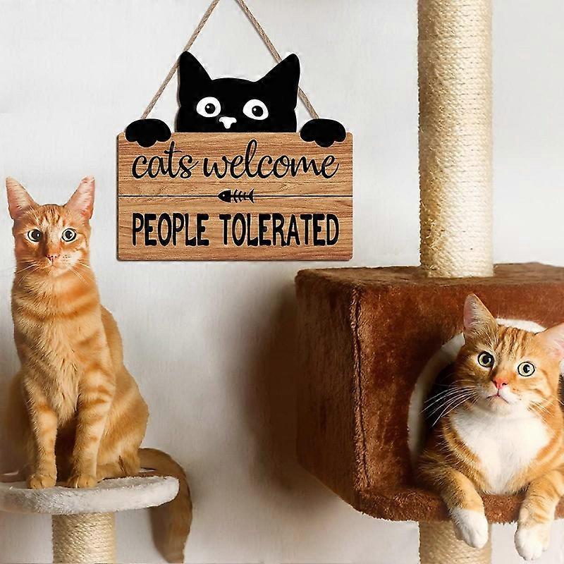 New Funny Cat Welcome Sign, Cats Tolerance Kitten Footprint Wooden Sign Black Cat Wall Party Decor Dog Door Sign
