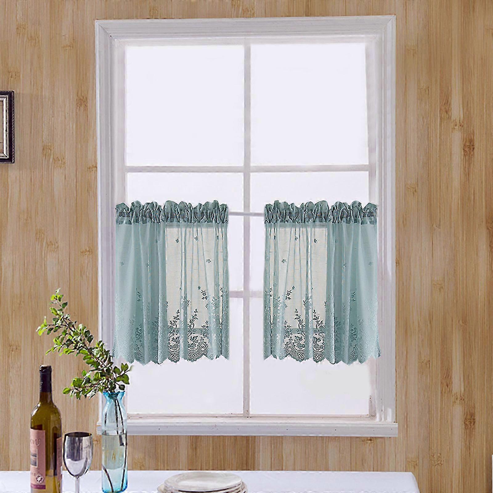 1PCS Curtains Valance Lace Translucent Contemporary For Home Kitchen Sun Visor-A6-Blue