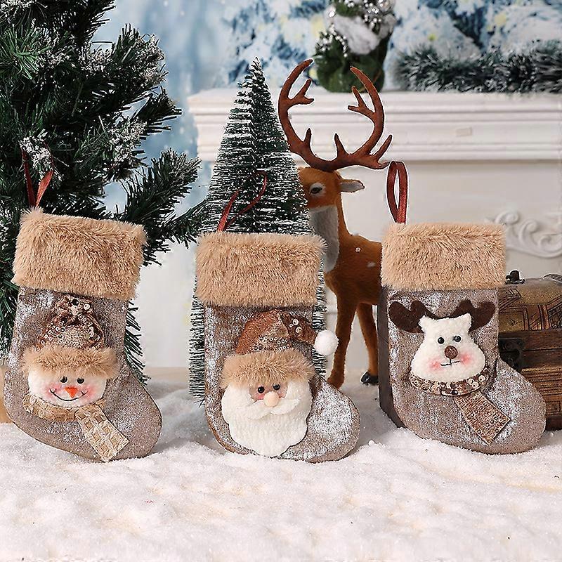 New small Christmas socks three-pack Christmas tree decoration pendant Santa gift bag small socks three-pack