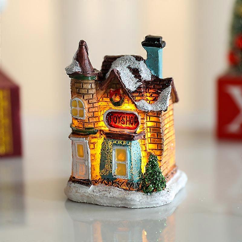 New Christmas glowing little house home window display Christmas decoration resin little house small gift E