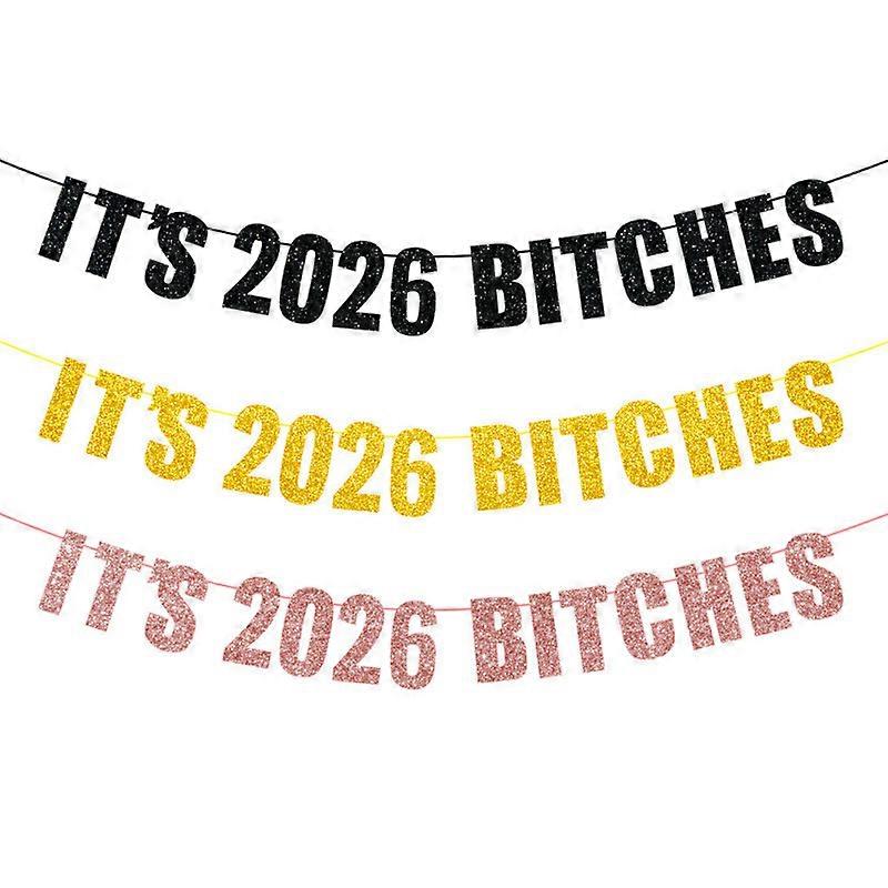 New Year's Eve and New Year's Day party decorations Happy New Year flags and garlands It's 2026 Bitches - Gold