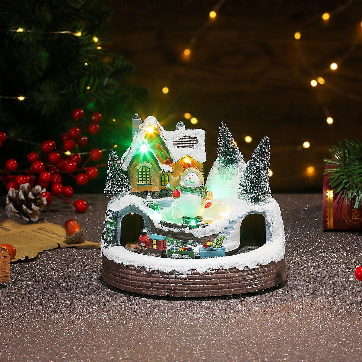 New Christmas luminous music rotating train resin ornaments Christmas decorations gift music box snowman model